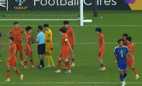 当时是下半场比赛,中国队一度有一些起色,但是刘浩帆在禁区内的手球被判罚了点球,由于是西亚裁判,加上对手有越位嫌疑,中国队所有球员包括门将李昊在内,都上前围住裁判想讨要说法。这个时候,画面中日本队8号球员的一个举动真的太牛了。