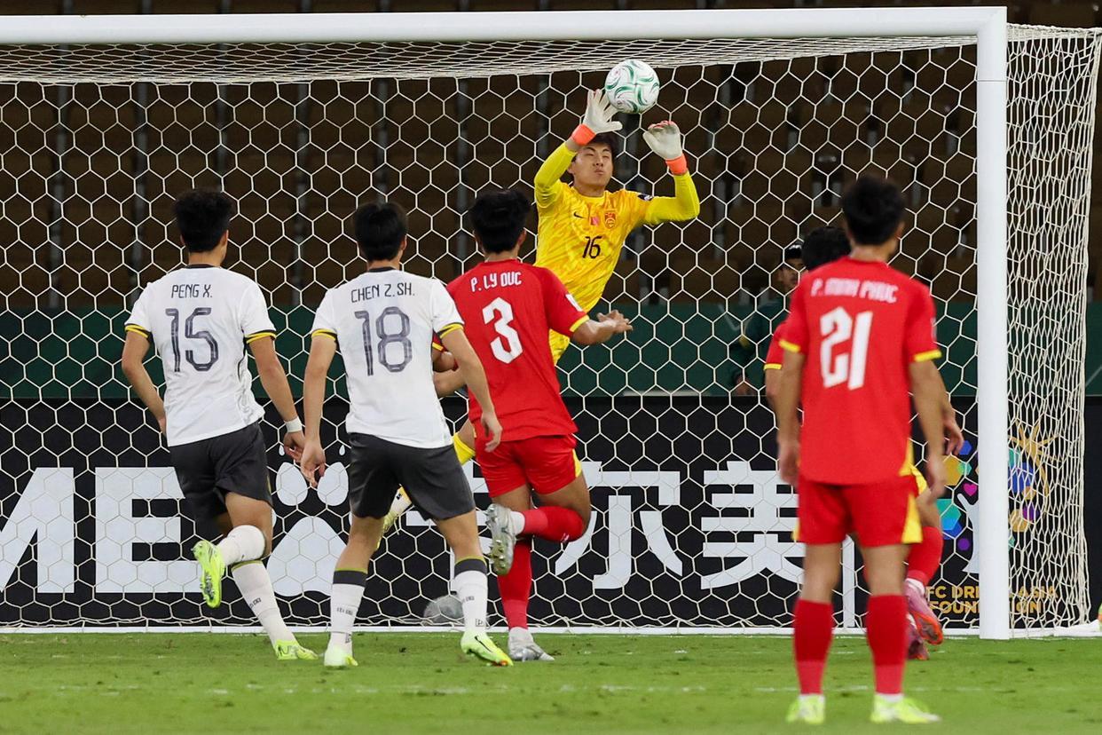 半决赛对阵越南,他又飞身扑出直奔死角的任意球,化解危机。